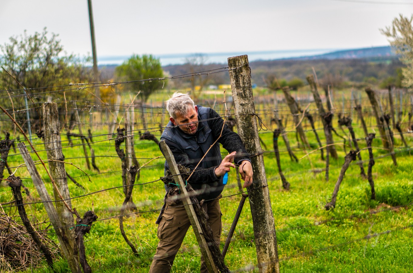 Hat hektáros szőlőterületen gazdálkodunk, fő fajtáink: Olaszrizling, Kékfrankos és Tramini, de emellett van még Juhfark, Rizlingszilváni, Szürkebarát, Merlot és Cabernet Franc ültetvényünk is. Szőlőbirtokaink Hegyestűtől a Szent Balázs- templomromon át egészen a völgy tetejéig, a csicsói Pirkancig húzódnak, melyeket akár egy kényelmes délután körbe is tudsz tekerni. Nem tudjuk eldönteni mi sem, hogy melyik évszakban a legszebb a birtokunk, így egész évben várunk szeretettel, előre egyeztetett időpontban.