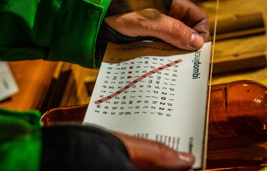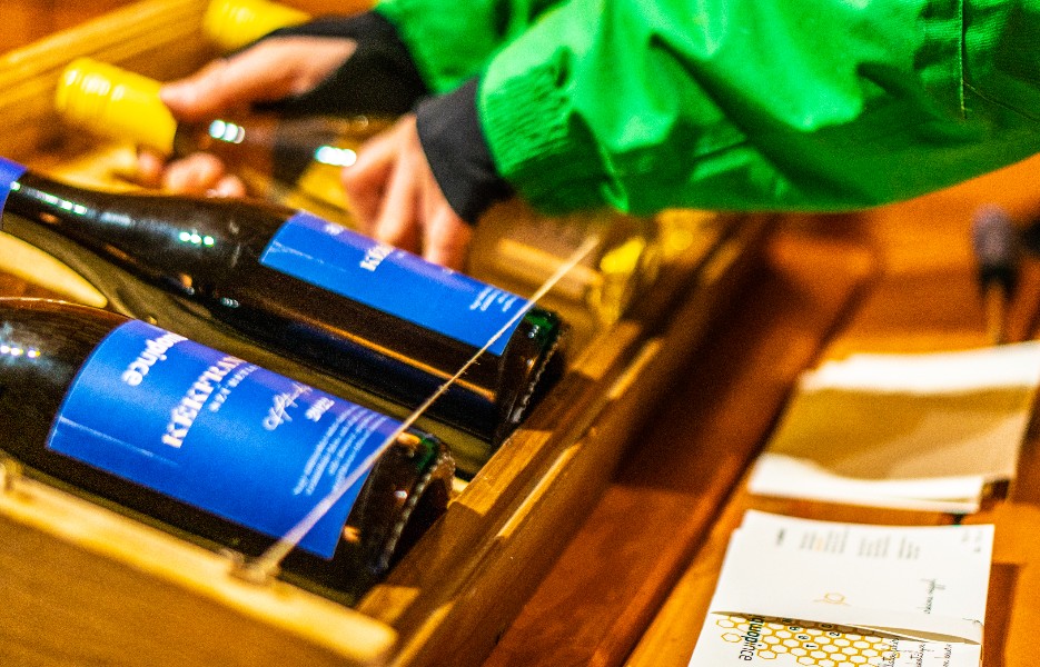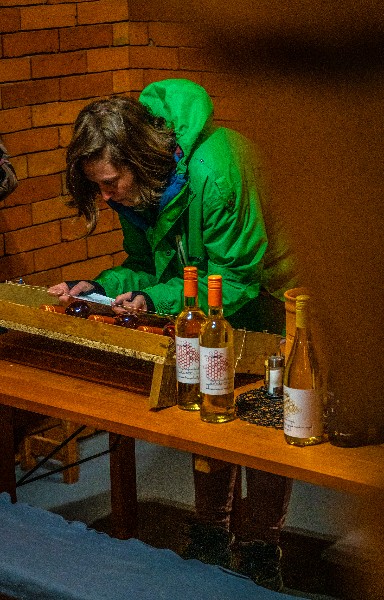 A borok címkéinek szépsége nagy mértékben függ az aznapi kézügyességünktől, hiszen azokat gép helyett mi helyezzük fel a palackokra. :-)